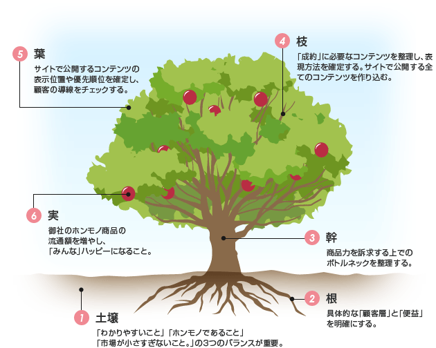 ヒアリング、情報設計、コピー案など、20年以上の支援実績から体系化された「樹」の設計図をベースに設計します。デザインは、ご予算やイメージから、最適なデザイナーをアサインいたします。